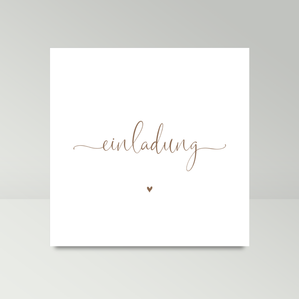 ❤ Unsere Hochzeitseinladungskarten in klassischem Design mit goldenem Schriftzug und goldenem Herz haben ein quadratisches Format (14,8 x 14,8 cm).